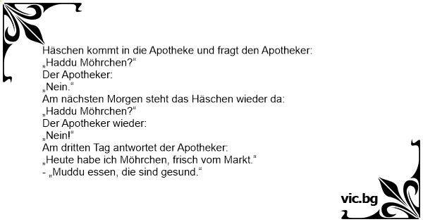 Häschen kommt in die Apotheke und fragt den Apotheker: