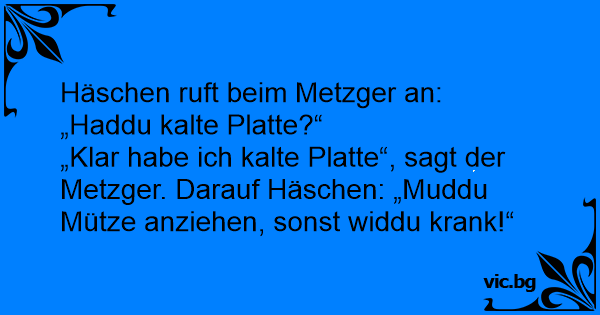 „Klar habe ich kalte Platte“, sagt der Metzger. Darauf Häschen: „Muddu Mütze anziehen, sonst widdu krank!“