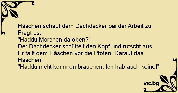 Häschen schaut dem Dachdecker bei der Arbeit zu. Fragt es: