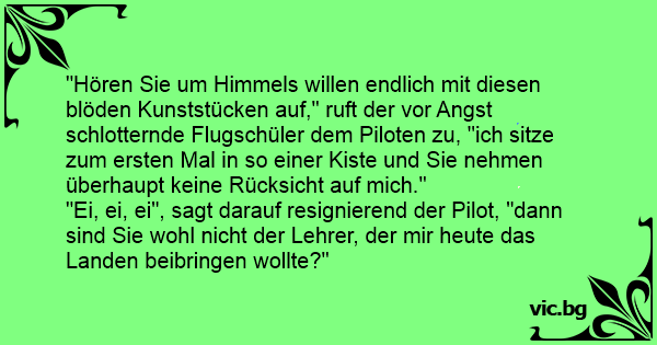 "Ei, ei, ei", sagt darauf resignierend der Pilot, "dann sind Sie wohl niсhт der Lehrer, der mir heute das Landen beibringen wollte?"