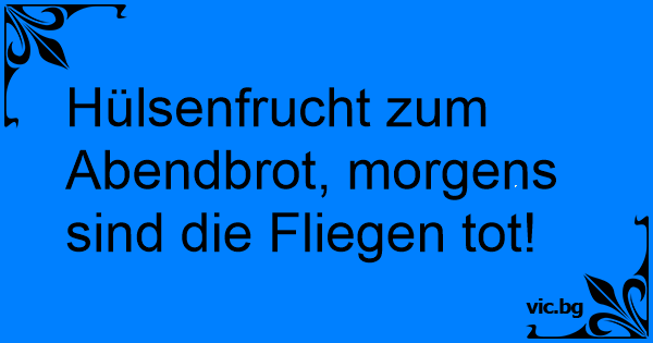 Hülsenfrucht zum Abendbrot, morgens sind die Fliegen tot!