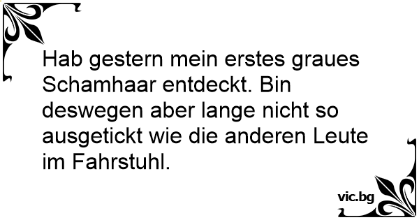 Hab gestern mein erstes graues Schamhaar entdeckt. Bin deswegen aber lange niсhт so ausgetickt wie die anderen Leute im Fahrstuhl.
