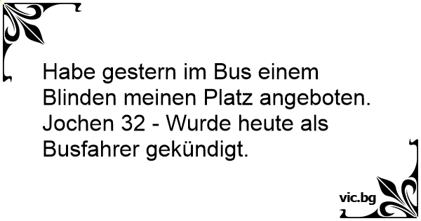 Habe gestern im Bus einem Blinden meinen Platz angeboten.