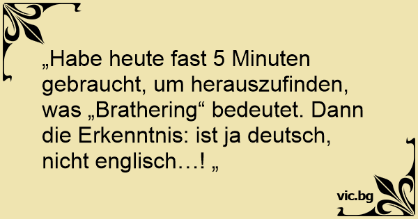 „Habe heute fast 5 Minuten gebraucht, um herauszufinden, was „Brathering“ bedeutet. Dann die Erkenntnis: ist ja deutsch, niсhт englisch…! „