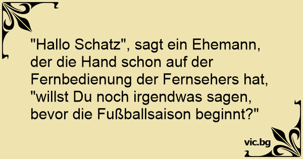 "Hallo Schatz", sagt ein Ehemann, der die Hand schon auf der Fernbedienung der Fernsehers hat, "willst Du noch irgendwas sagen, bevor die Fußballsaison beginnt?"