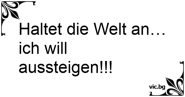 Haltet die Welt an… ich...