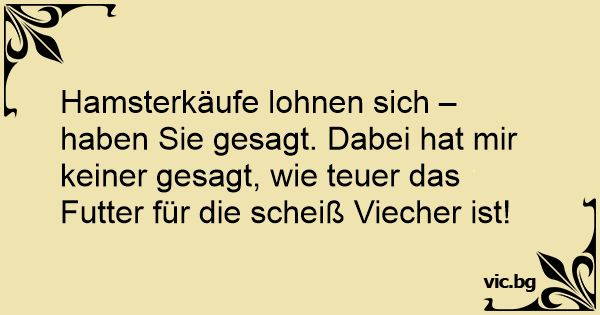 Hamsterkäufe lohnen sich – haben Sie gesagt. Dabei hat mir keiner gesagt, wie teuer das Futter für die scheiß Viecher ist!
