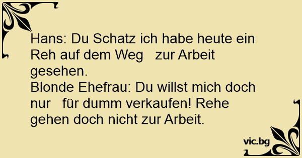 Hans: Du Schatz ich habe heute ein Reh auf dem Weg zur Arbeit gesehen.
