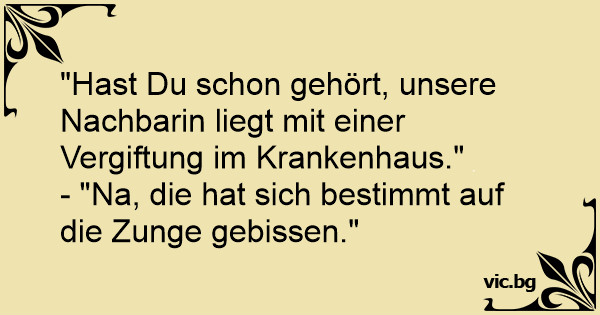 "Hast Du schon gehört, unsere Nachbarin liegt mit einer Vergiftung im Krankenhaus."