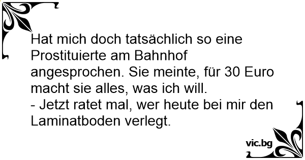 Hat mich doch tatsächlich so eine Prostituierte am Bahnhof angesprochen. Sie meinte, für 30 Euro macht sie alles, was ich will.