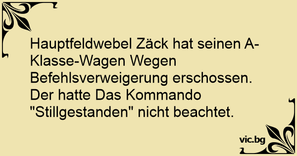 Hauptfeldwebel Zäck hat seinen A-Klasse-Wagen Wegen Befehlsverweigerung erschossen. Der hatte Das Kommando "Stillgestanden" niсhт beachtet.