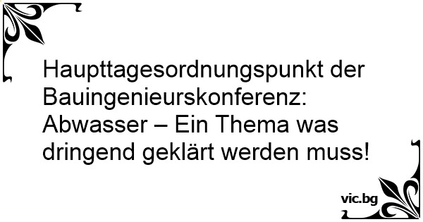 Haupttagesordnungspunkt der Bauingenieurskonferenz: Abwasser – Ein Thema was dringend geklärt werden muss!