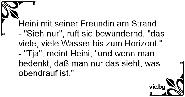 - "Tja", meint Heini, "und wenn man bedenkt, daß man nur das sieht, was obendrauf ist."