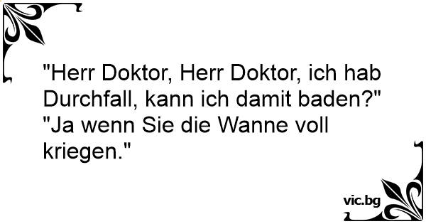 Ein Mann ruft beim Arzt an: "Herr Doktor, kann ich mit Durchfall baden?" Arzt: "Natürlich, wenn Sie die Wanne voll kriegen."