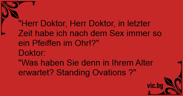 - Daktare, aš po sekso girdžiu ausyse švilpimą, ar galit man padėt? - Kiek jums metų? - Greit septyniasdešimt. - Atleiskit, bet tai natūralu, būtų keista, jei girdėtumėte aplodismentus…