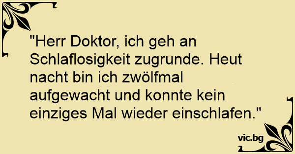 "Herr Doktor, ich geh an Schlaflosigkeit zugrunde. Heut nacht bin ich zwölfmal aufgewacht und konnte kein einziges Mal wieder einschlafen."