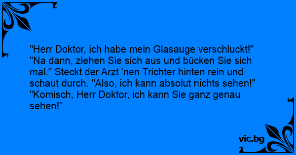"Herr Doktor, ich habe mein Glasauge verschluckt!"