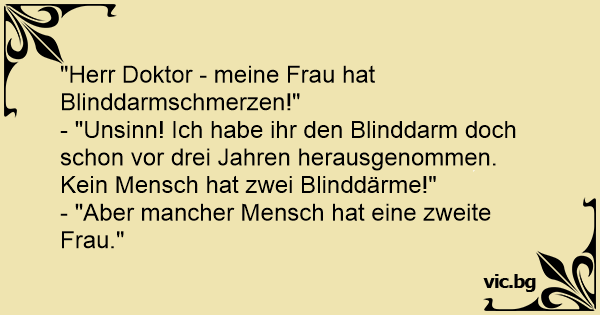 "Herr Doktor - meine Frau hat Blinddarmschmerzen!"