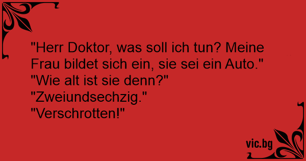 "Herr Doktor, was soll ich tun? Meine Frau bildet sich ein, sie sei ein Auto."