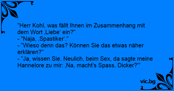 - "Ja, wissen Sie. Neulich, beim Sеx, da sagte meine Hannelore zu mir: ‚Na, macht’s Spass, Dicker?'"