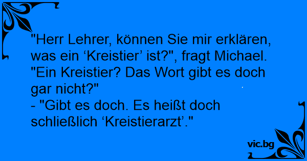 "Herr Lehrer, können Sie mir erklären, was ein ‘Kreistier’ ist?", fragt Michael. "Ein Kreistier? Das Wort gibt es doch gar niсhт?"