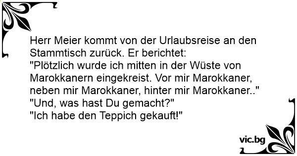 Herr Meier kommt von der Urlaubsreise an den Stammtisch zurück. Er berichtet: