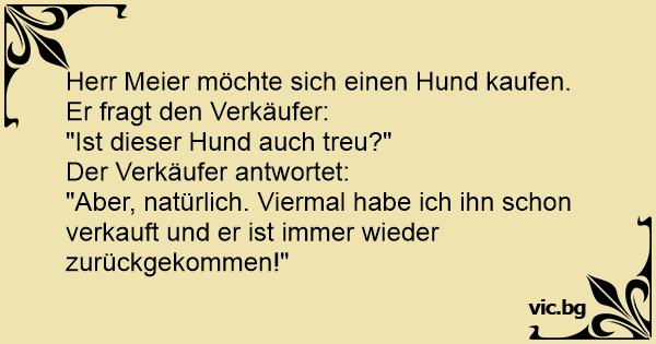 Herr Meier möchte sich einen Hund kaufen. Er fragt den Verkäufer:
