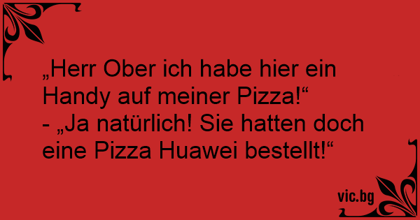 - „Ja natürlich! Sie hatten doch eine Pizza Huawei bestellt!“