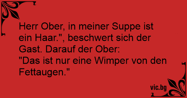 Herr Ober, in meiner Suppe ist ein Haar.", beschwert sich der Gast. Darauf der Ober: