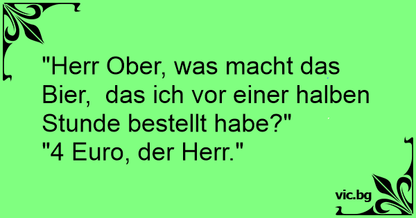 "Herr Ober, was macht das Bier, das ich vor einer halben Stunde bestellt habe?"