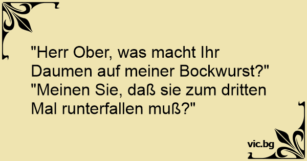 "Herr Ober, was macht Ihr Daumen auf meiner Bockwurst?"