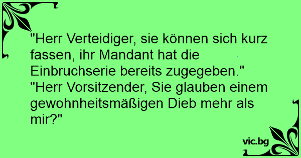 "Herr Verteidiger, sie können sich kurz fassen, ihr Mandant hat die Einbruchserie bereits zugegeben."