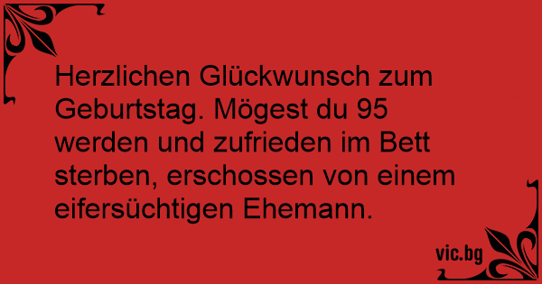 Herzlichen Glückwunsch zum Geburtstag. Mögest du 95 werden und zufrieden im Bett sterben, erschossen von einem eifersüchtigen Ehemann.