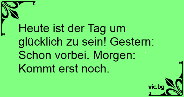 Heute ist der Tag um glücklich zu sein! Gestern: Schon vorbei. Morgen: Kommt erst noch.