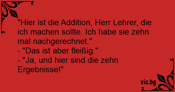 "Hier ist die Addition, Herr Lehrer, die ich machen sollte. Ich habe sie zehn mal nachgerechnet."