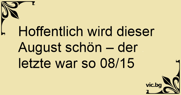 Hoffentlich wird dieser August schön – der letzte war so 08/15
