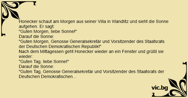 "Guten Morgen, Genosse Generalsekretär und Vorsitzender des Staatsrats der Deutschen Demokratischen Republik!"