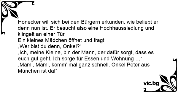 Honecker will sich bei den Bürgern erkunden, wie beliebt er denn nun ist. Er besucht also eine Hochhaussiedlung und klingelt an einer Tür.