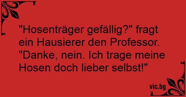 "Hosenträger gefällig?" fragt ein Hausierer den Professor. "Danke, nein. Ich trage meine Hosen doch lieber selbst!"