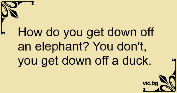 How do you get down off an elephant? You don't, you get down off a duck.