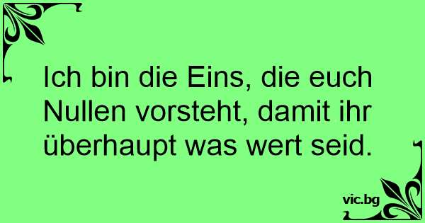 Ich bin die Eins, die euch Nullen vorsteht, damit ihr überhaupt was wert seid.