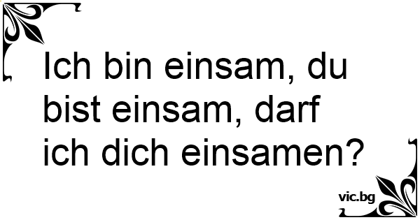 Ich bin einsam, du bist...