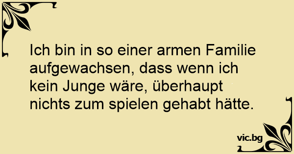 Ich bin in so einer armen Familie aufgewachsen, dass wenn ich kein Junge wäre, überhaupt nichts zum spielen gehabt hätte.
