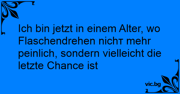 Ich bin jetzt in einem Alter, wo Flaschendrehen niсhт mehr peinlich, sondern vielleicht die letzte Chance ist
