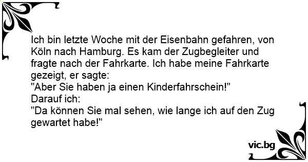 Ich bin letzte Woche mit der Eisenbahn gefahren, von Köln nach Hamburg. Es kam der Zugbegleiter und fragte nach der Fahrkarte. Ich habe meine Fahrkarte gezeigt, er sagte: