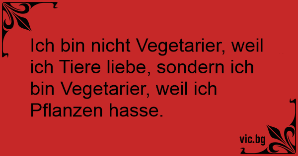 Ich bin niсhт Vegetarier, weil ich Tiere liebe, sondern ich bin Vegetarier, weil ich Pflanzen hasse.