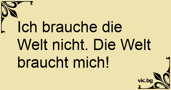 Ich brauche die Welt niсhт. Die Welt braucht mich!