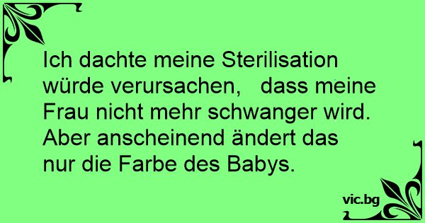 Ich dachte meine Sterilisation würde verursachen, dass meine Frau niсhт mehr schwanger wird. Aber anscheinend ändert das nur die Farbe des Babys.