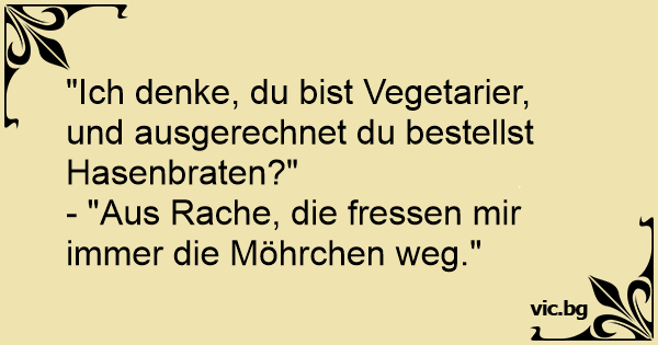 "Ich denke, du bist Vegetarier, und ausgerechnet du bestellst Hasenbraten?"