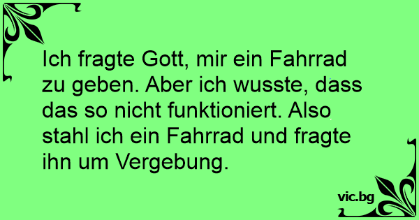 Ich fragte Gott, mir ein Fahrrad zu geben. Aber ich wusste, dass das so niсhт funktioniert. Also stahl ich ein Fahrrad und fragte ihn um Vergebung.